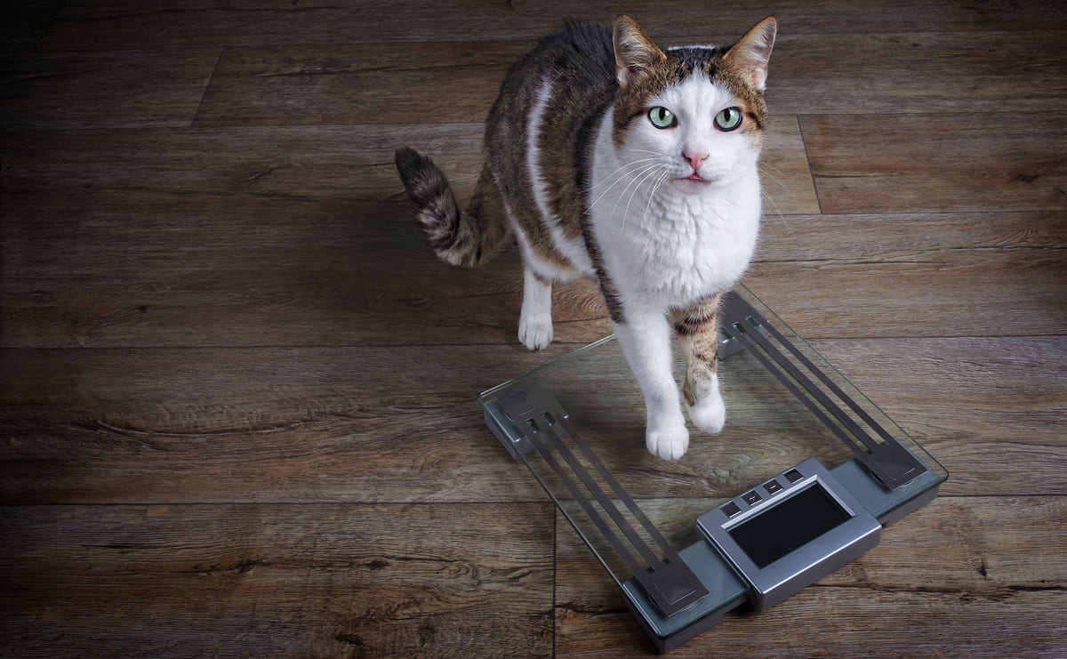 Питание — один из ключевых факторов, влияющие на вес кошки. Слишком калорийный корм, избыточное кормление и неограниченный доступ к пище обычно приводят к развитию ожирения у питомцев. Несбалансированные рационы низкого качества, с недостаточным содержанием основных питательных веществ, витаминов и минералов, также могут негативно влиять на вес кота, но уже в меньшую сторону, провоцируя его дефицит. Также животное может терять вес, если получает недостаточную порцию корма, даже при том условии, что он полностью сбалансирован и изготовлен из качественных ингредиентов.