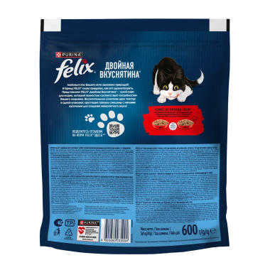 Сухой корм FELIX® Двойная Вкуснятина® для взрослых кошек, с мясом, Пакет, 600 г