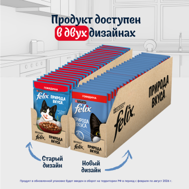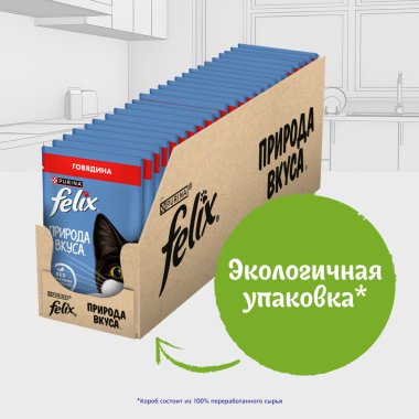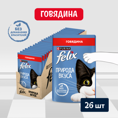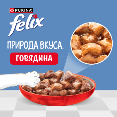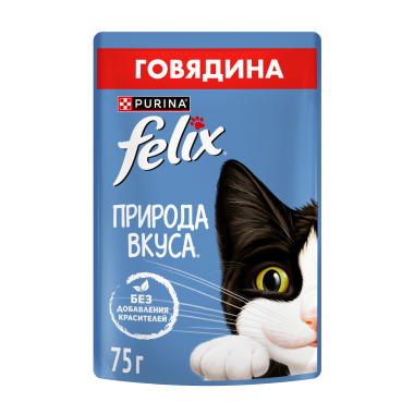 Влажный корм FELIX® Природа вкуса для взрослых кошек, с говядиной в соусе 75 г
