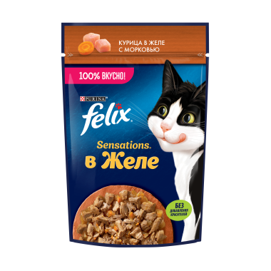Влажный корм FELIX® Sensations для взрослых кошек, с курицей в желе с морковью, Пауч
