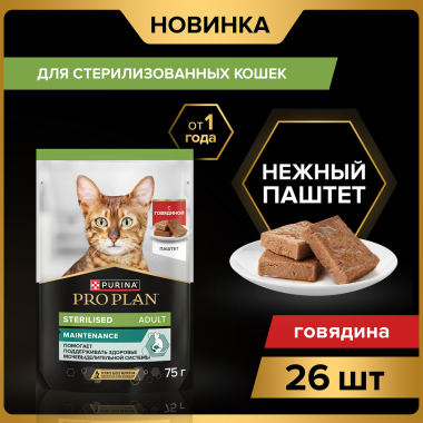Влажный корм PRO PLAN® Sterilised MAINTENANCE для взрослых стерилизованных кошек, паштет с говядиной