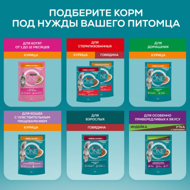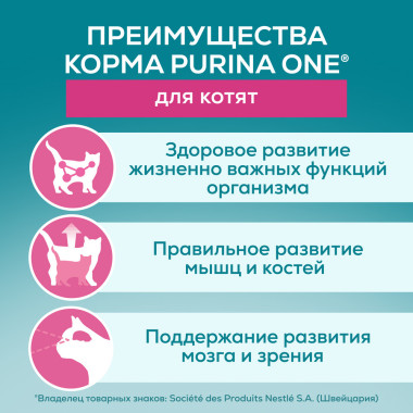 Корм консервированный полнорационный сбалансированный Purina ONE® (Пурина Уан) специально разработан ветеринарными врачами и диетологами Нестле Пурина ПетКэр. Корм Purina ONE® (Пурина Уан) — это сочетание отличного вкуса и гарантия пользы. Вы можете быть уверены, что с кормом Purina ONE® (Пурина Уан) Ваша кошка получит питание высокого качества с отличным вкусом для поддержания ее здоровья.