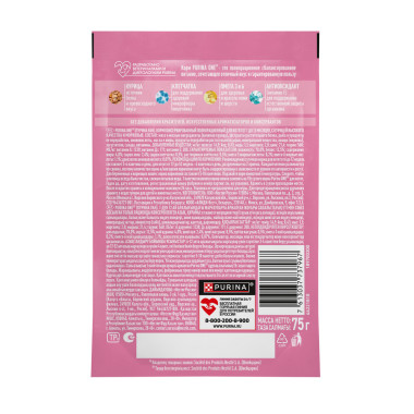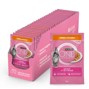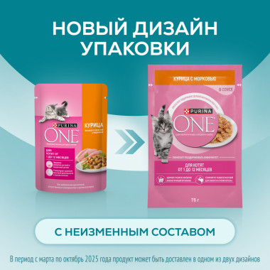 Влажный корм Purina ONE® для котят, с курицей и морковью, Пауч, 75 г
