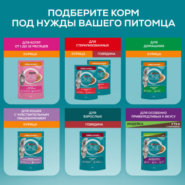 Корм консервированный полнорационный сбалансированный Purina ONE® (Пурина Уан) специально разработан ветеринарными врачами и диетологами Нестле Пурина ПетКэр. Корм Purina ONE® (Пурина Уан) — это сочетание отличного вкуса и гарантия пользы. Вы можете быть уверены, что с кормом Purina ONE® Ваша кошка получит питание высокого качества с отличным вкусом для поддержания ее здоровья.